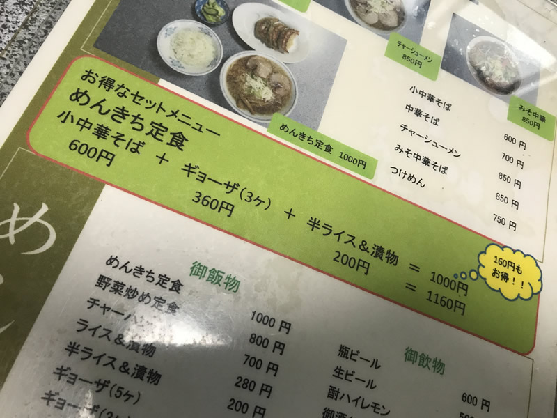 メニューでも「めんきち定食」のプッシュに力が入ります。