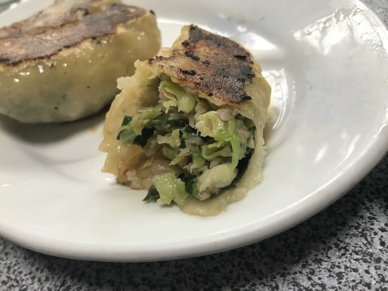 大ぶりの皮に、ニラやキャベツをたっぷり入れて焼き上げます。